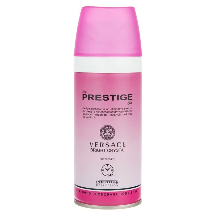 ✅️تلفن مشاوره و سفارشات : 📱09155123975 📱09379373975 با اسپری کردن این محصول ابتدا بوی ناخوشایند بدن شما از بین رفته و با رایحهای از ورساچ صورتی فضا را پر خواهد کرد. این اسپری زنانه در حجم 150 میلی لیتر توسط برند Prestige تولید شده است. اسپری ورساچ صورتی جهت استفاده روزانه مناسب بوده و به عنوان اسپری معمولی از آن یاد میشود. این برند بر روی تمامی اسپریهای خود ذکر کرده کالکشنهای تولید شده توسط این برند هیچ ارتباطی با سایر شرکتها نداشته و توسط برند پرستیژ عرضه شده است. جهت استفاده از این محصول از فاصله 15 سانتی متری به صورت عمود به زیر بغل اسپری کنید.